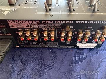 mixer BEHRINGER VMX300USB con contabattute digitali, connessione al P.C., assistenza elettronica al missaggio, 3 canali sdoppiabili, ampia scala led su ogni canale, kill switch, ecc.