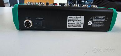 Mixer compatto a 6 canali con multieffetto Mixer compatto con lettore mp3 integrato, connettività bluetooth e scheda audio. Multieffetto DSP integrato. Un mixer compatto ma con una ricca dotazione, straordinariamente affidabile e versatile con una interfaccia chiara e intuitiva. Specifiche Tecniche: 4 IN mic/line + 1 stereo line Lettore mp3 con USB e display permette di registrare le performance su Supporto USB Connettività Bluetooth Collegabile al computer con USB Alimentazione phantom +48V Equalizzatore a 2 bande su ogni canale Unità multieffetto DSP CON 16 effetti e una nuova e migliore connettività con il PC Indicatore di livello master a 5 LED Uscita cuffie Alette aggiuntive intercambiabili nere Dimensioni (LxPxH): 260 x 230 x 60mm
