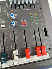 Mixer perfettamente funzionante, estremamente datato ma mai veramente sfruttato, mai utilizzato (MAI) come amplificatore, solo uso sporadico per sala prove amatoriale poi sostituito con uno con più piste, PERFETTO, elettronica PERFETTA, canale 1 escluso dall’uso, no perditempo e no trattative senza senso.