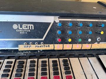 Vendo mixer audio/luci marca LEM, modello 200-4, alcuni canali non funzionanti, da verificare, ottimo per esposizione/collezione. Vendo per inutilizzo, primo contatto per mail/messaggio.