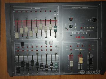 Dimmer per luci Lem mixer 16 canali FBT LP 16 k made in italy degli anni '80 con la centralina a 8 uscite per lampade ad incandescenza e ingresso 220\380 mono o trifase, completamente modulare, più il mixer di controllo. Ha 2 gruppi di 8 luci (Gruppo A e Gruppo B)
