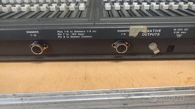Vendo centralina analogica luci della Strand Lighting modello LX + flight case. Oltre la centralina è presente il suo cavo, di una notevole lunghezza, per controllare due dimmer.