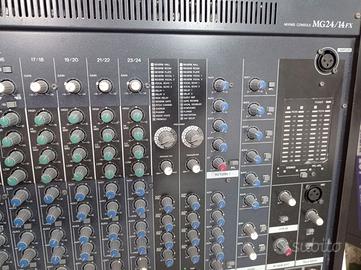 ELEVATA CAPACITÀ DI INPUT Il modello MG24/14FX dispone 16 ingressi mono e di 4 ingressi stereo. Una serie di controlli di input e di interruttori pad consentono l'associazione ottimale con una gamma molto ampia di sorgenti: i livelli dei microfoni possono essere regolati da -60 dB a +10 dB, mentre quelli di linea da -34 dB a +10 dB. INPUT VERSATILI Gli input mono sono dotati di prese audio bilanciate e XLR. Due degli input stereo forniscono prese audio e jack pin RCA. Sono inoltre disponibili ingressi RCA a 2 tracce indipendenti per jack pin per lettori CD o altre sorgenti a livello di linea stereo. PREAMPLIFICATORI PER MICROFONI DI PRIMA CLASSE I mixer della serie MG sono dotati di preamplificatori per microfoni a bassa rumorosità e alte prestazioni. ALIMENTAZIONE PHANTOM COMMUTABILE I preamplificatori per microfoni dei mixer MG forniscono alimentazione phantom a 48V per microfoni a condensatore di qualità professionale. L'alimentazione phantom può essere attivata o disattivata in gruppi di 8 canali. INSERIMENTO I/O I canali di input mono dispongono inoltre di patch point di inserimento che è possibile utilizzare per inserire dispositivi di elaborazione del segnale esterno nel percorso di segnale del canale EQ DI CANALE MONO A 3 BANDE MID-SWEEP, EQ DI CANALE STEREO A 4 BANDE EQ a 3 bande con controllo HIGH shelving da 10 kHz, controllo MID 250 Hz ~ 5 kHz selezionabile e controllo LOW shelving da 100 Hz