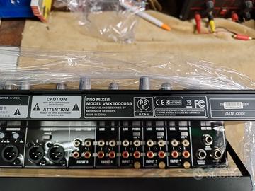 Mixer per DJ Behringer PRO MIXER VMX1000USB. È un mixer professionale a 7 canali montabile a rack, noto per la sua versatilità in contesti live e club.