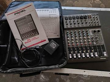 Vendo mixer Proel 8 canali con borsa per il trasporto, manuale di istruzioni e alimentatore originale. Perfettamente funzionante in ogni sua parte ma mancante di un cursore come da foto.
