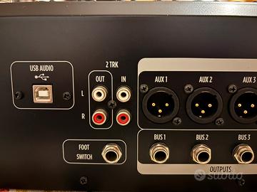CARATTERISTICHE ? 18 mic/line IN, 3 linee stereo IN 1 ingresso ritorno stereo 8 Compressori dinamici monocomando (canale 1 - canale 8) Equalizzazione semiparametrica a 4 bande Equalizzazione su ingressi stereo a 3 bande 6 trasmissioni ausiliarie per canale Fader progressivi da 100 mm con coperchio antipolvere 2 gruppi stereo Sezione effetti DSP Z-CORE a virgola mobile a 32 bit L'E 24 offre diciotto preamplificatori microfonici con guadagno di 54 dB e qualità da studio con connettori combinati. Due ingressi di linea sono commutabili su ingresso Hi-Z. La sezione di ingresso dispone anche di tre ingressi di linea stereo e di un ritorno stereo. I canali d'ingresso da 1 a 8 sono dotati di un compressore monocomando. I diciotto canali monocomando sono dotati di equalizzatore a 4 bande, che includono bande alte e basse di tipo shelving e due bande medie semi-parametrica (medio alta e medio bassa) con selezione di frequenza e scelta di Q commutabile, ampia o stretta. I canali d'ingresso stereo sono dotati di un equalizzatore a tre bande.