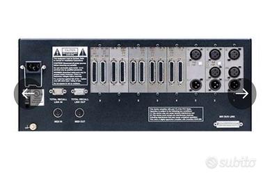 vendo sistema completo Solid State Logic Total Recall Composto da Sommatore, Control Room completa per pilotare 2 coppie di casse, Compressore G e 2 equalizzatori serie black. Completo di scatola tenuto in studio no smoke. Compresi anche cavi di collegamento realizzati a mano (cannon e db25) così da ricevere il sistema pronto all’uso chiavi in mano. Non vendo separatamente Preferibile consegna a mano su Milano o Toscana Spedizione a carico dell’acquirente. Valore mercato 8000€