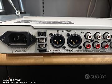 Uscita con XLR O RCA, inoltre ha la regolazione toni e livello master separato su canale dx e sx.