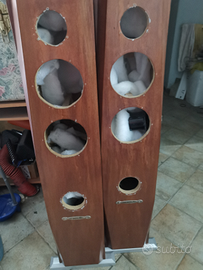 mobili per diffusori, rifiniti da ebanista, mdf 2 cm con rinforzi interni. misure in cm LxHxP 25×130×42 , litri 55. fori altoparlante 2x16 cm più uno da 9cm di diametro più foro con condotto reflex (chiudibile per cassa chiusa). molto belli. Solo ritiro di persona