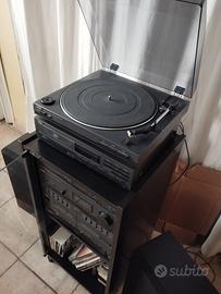 Mobile con impianto stereo Hi-Fi modello AIWA CX-75Z completo di giradischi PX-E75, lettore CD DX-M75E, sintonizzatore/amplificatore e piastra a doppia cassetta, due casse stereo da 60 w di potenza.
