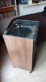 Mobiletto mobile d'epoca in legno e vetro portagiradischi portastereo con vano porta-dischi .