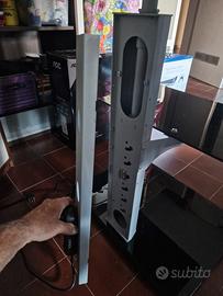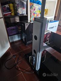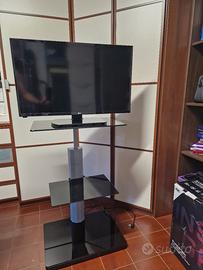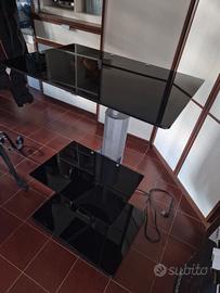 Causa inutilizzo vendo mobile porta TV munito di ruote con tre ripiani in vetro (il terzo base terra) e quello in alto rotante... struttura in metallo e vano nascondi cavi sul retro... perfetto come nuovo non presenta graffi. Misure in cm. : base 1º ripiano 60x40;