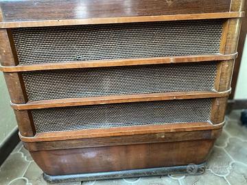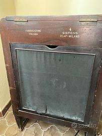 MOBILE RADIO A VALVOLE con GIRADISCHI, marca "SIEMENS OLAP" (licenza Telefunken), anni '30-'40 in radica. Impianto funzionante ma da revisionare. Misure: lunghezza 59, altezza 53, profondità 50