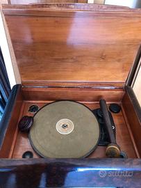Il mobile e' realizzato in legno massello e radica e include il giradischi nella parte superiore con le sue puntine originali e spugnetta pulisci dischi originale.