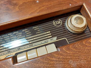 Mobile radio di legno a tavolino da caffè con radio a valvole CGE, magnetofono CGE e giradischi Garrard. 80x80x48 si apre da sopra.Non testato venduto come visto e piaciuto