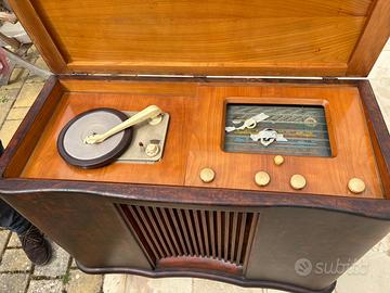 Pezzo d’arredo vintage perfetto per appassionati di Hi-Fi d’epoca, collezionisti di radio e design italiano del dopoguerra.