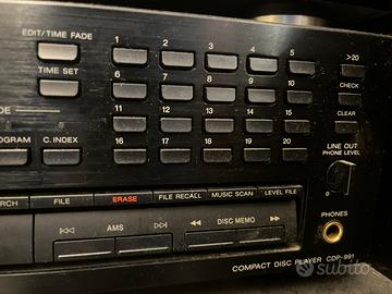 Come da titolo vendo mobile stereo hi-fi vintage, completo di vetrinetta e casse stereo. Si precisa che si vende TUTTO INSIEME non separatamente. In foto manca qualche componente per cui adesso faró una lista dei modelli e tutto ció che c’è: Giradischi YAMAHA tt-300 Stereo cassette AIWA AD-WX999 Amplificatore KENWOOD KA-57 Stereo tuner synthesizer KENWOOD KT-1020L Compact disc SONY CDP-991 Coppia di casse BOSE INTERAUDIO 4000 XL Le condizioni generali di questi prodotti mi vien da scrivere pari al nuovo perchè mai usate ma sinceramente non vi so dire se il tutto è perfettamente funzionante, li tolgo perchè non a tema con il soggiorno e ingombranti. Si offre e si cerca massima serietà, ritiro a mano, se davvero interessati prezzo leggermente trattabile.