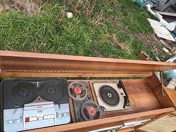 Mobile stereo vintage con giradischi e registratore di bobine e coppia di casse Perser. Buono stato. No perditempo. Per info 3485168724