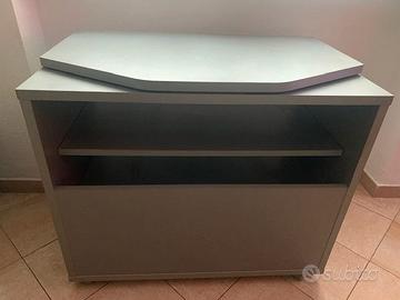 Mobiletto multimediale porta TV grigio argento – pratico e dal design moderno Dimensioni: 82 (L) × 50 (P) × 70 (H) cm. Dotato di due ripiani interni, piano superiore girevole, ideale per orientare lo schermo e apertura posteriore per eventuale passaggio cavi. Antine in cristallo trasparente e rotelle piroettabili per spostamento agevole. Struttura solida, versatile e in ottime condizioni. Prezzo: €120 Zona: Provincia di Genova. Disponibile per ritiro.