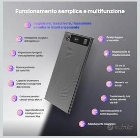 Vendo registratore vocale integrato con IA: Mobvoi TicNote con memoria da 64 GB (Oltre 100 Lingue) Trascrizione e Riepilogo con AI Shadow, Registratore Audio Digitale per Telefonate. Acquistato 11 luglio 2025 (mostro fattura di acquisto a chi è interessato). L'ho usato 2 volte, vendo per inutilizzo. Prezzo originario €167,25 (vedi su amazon).
