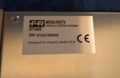 Il MOD-HDTV della FRACARRO, è un modulatore digitale di alta qualità che è in grado di gestire una sorgente HDMI oppure una sorgente analogica (Video+Audio Stereo) e convertirla in un canale RF digitale DVB-T in uscita. L’eccellente risoluzione raggiungibile (Full HD 1920*108030p) e l’elevata qualità della modulazione (MER tipico di 35dB) rendono il modulatore MOD-HDTV la soluzione ideale per rimodulare