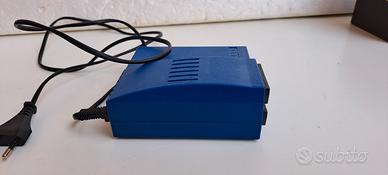 Modulatore RF audio/video, dispositivo per converte i segnali audio e video analogici (spesso da fonti con uscita SCART, come mostrato) in un segnale RF (radiofrequenza) che può essere trasmesso tramite cavo coassiale e ricevuto dai sintonizzatori TV.