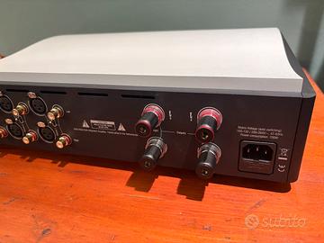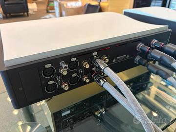 USATO, PARI AL NUOVO DI AGOSTO 2025 CON IMBALLO ORIGINALE Kula, l'integrato di Mola Mola Geniale progettista, Bruno Putzeys debutta con un amplificatore integrato estremamente versatile e performante, a completare la gamma di prodotti. Mola Mola è una giovane azienda dei Paesi Bassi con pochi prodotti a catalogo ma molto ben calibrati. L’originale caratterizzazione del marchio non riguarda solo la filosofia di progettazione ma anche il nome. Mola Mola, infatti, è un grosso pesce meglio conosciuto come pesce luna, la cui raffigurazione, con le tipiche pinne, è presente nel logo del marchio. Anche il morbido e originale design delle elettroniche, come del telecomando, gli si ispirano, imitandone le superfici. Dietro Mola Mola c’è il geniale Bruno Putzeys, che la ha fondata poco più di 10 anni fa, e che ne è l’attuale CEO. Ha sempre fatto dell’amplificazione digitale la sua bandiera, essendo, tra l’altro, uno degli sviluppatori dell’UcD (Universal classe-D), un modulo amplificatore compatto e versatile, venduto poi in svariate versioni che equipaggiano la quasi totalità degli amplificatori digitali. Insomma Mola Mola è uno dei pochissimi casi, forse l’unico, in cui il modulo amplificatore in classe D non viene semplicemente implementato, ma è proprio progettato su misura e in modo esclusivo. Kula è il nuovo prodotto, ed è un amplificatore integrato che si affianca al pre Makua, al DAC Tambaqui e i finali mono Kaluga. I nomi ricordano pesci o splendide spiagge tropicali. Kula è invece una cerimonia di scambio di doni, effettuata nelle isole Trobriand, evento centrale nella vita di quelle popolazioni, come del resto “centrale” è il ruolo di un amplificatore nell’ascolto della musica. Kula è un integrato stereo con potenza di 2x150W su 8ohm e 2x300W su 4ohm ovviamente in classe D con circuitazione completamente bilanciata e stadi realizzati a discreti in configurazione "single ended driven differential". Come nel Makua, la programmazione degli ingressi è a matrice
