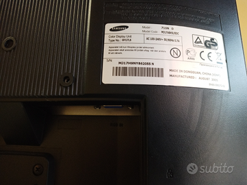 Vendo n.2 monitor a colori . N.1mod. Sing Master 943. N.1 mod.710N. Entrambi con ingresso VGA senza casse acustiche, con cavo di alimentazione.