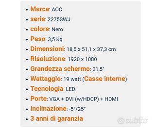 Usato pochissimo vendo il monitor in foto perfettamente funzionante