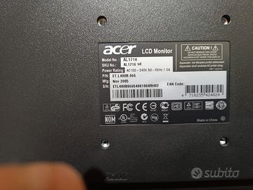 vendo monitor Acer da 17 pollici perfettamente funzionante.
