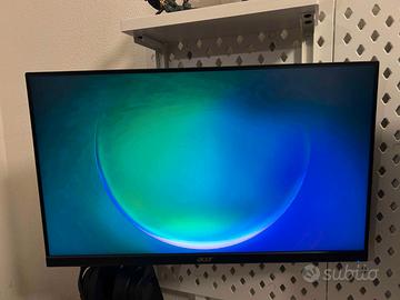 Monitor Acer Nitro VG240Y da 23,8" con pannello IPS Full HD (1920×1080) e frequenza di aggiornamento fino a 100 Hz. Dotato di altoparlanti integrati (2×2 W), tecnologia AMD FreeSync per fluidità in gioco e riduzione del tearing. Connessioni: HDMI 1.4 e ingresso VGA, montaggio VESA 100×100 per supporto a parete o braccio. Tempo di risposta 1 ms (VRB), angolo di visione 178° H / 178° V, luminosità 250 cd/m² circa. Ha un graffio sull'angolo in alto a destra. Per il resto perfettamente funzionante. Venduto con scatola e accessori originali.