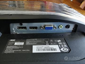 Monitor AOC 22" Full HD – HDMI / DisplayPort – FreeSync + cavi inclusi Monitor AOC modello G2260VWQ6 da 21.5" in ottime condizioni, perfettamente funzionante. Ideale per uso quotidiano, lavoro o gaming leggero. ✔ Risoluzione Full HD (1920x1080) ✔ Tecnologia FreeSync per immagini più fluide ✔ Ingressi: HDMI, DisplayPort, VGA ✔ Design nero/rosso ✔ Inclusi cavo HDMI e cavo di alimentazione (pronto all’uso) 50€ spedito - 40€ ritiro a mano a Torino Display senza difetti, sempre utilizzato con cura.