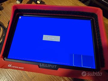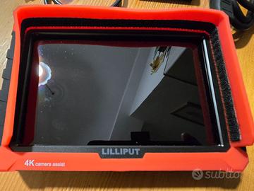 Monitor Lilliput 7" completo di tutti gli accessori (due batterie, cavi hdmi e analogici, second skin in silicone rossa). Hdmi in e out, è stato usato pochissimo come nuovo con custodia.