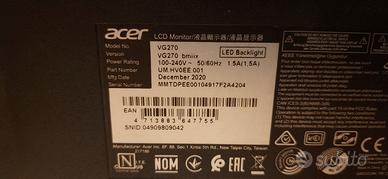 Acer Nitro VG270bmiix Monitor Gaming FreeSync, 27", Display IPS Full HD, 75 Hz, 1 ms, 16:9, VGA, HDMI, 250 cd/m2, Audio In/Out, Speaker Integrati, Cavo alimentazione incluso.