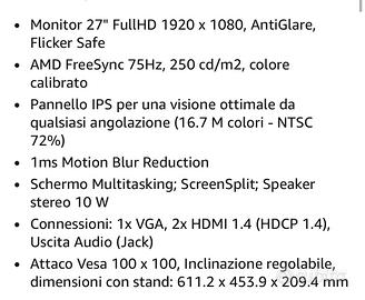Vendo Monitor LG 27, usato pochissimo e in perfette condizioni. Prezzo di mercato 300/330€ Prezzo trattabile