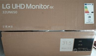 LG 32UN650P Monitor 32" UltraHD 4K LED IPS HDR 10, 3840x2160, 5ms, AMD FreeSync 60Hz, Audio Stereo 10W, HDMI 2.0 (HDCP 2.2), Display Port 1.4, AUX, Flicker Safe, Bianco Ottime condizioni, in confezione originale. Zona Mestre-Venezia