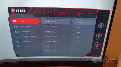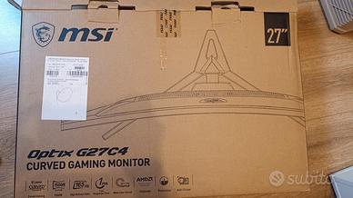 MSI OPTIX G27C4 Curvo Full HD 1080p frequenza fino a 165Hz con cavo display port. inclusi ci sono il cavo di alimentazione, un cavo display port, la staffa con le sue viti per montarlo e dispone di scatola e imballaggio originale e istruzioni.