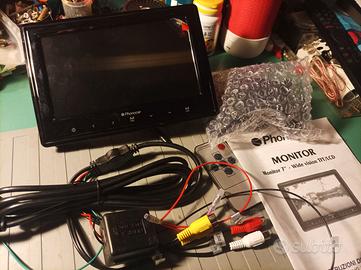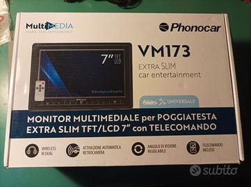 Monitor Multimediale 7" Phonocar VM173 extra slim x auto, camper, furgone, x telecamere frontale o posteriore. Perfettamente funzionante e nuovo. Completo di tutti i suoi cavi, con due spinotti audio e due video, a 2 canali,