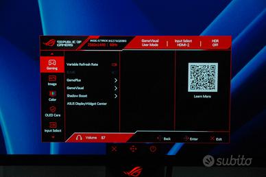 Monitor ROG Strix OLED XG27AQDMG usato un anno ,pagato 600 euro, lo vendo perché ho preso un altro monitor più adatto alle mie esigenze.Acquistato su Amazon.il monitor oggettivamente presenta immagini nitide con colori precisi e forti,anche merito alla superficie lucida del monitor( puoi regolare l'immagine come vuoitrsmite le impostazioni del monitor)