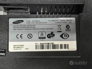 Monitor Samsung S24C450MW - 24 Pollici Connettività DVI e Vga, Sistema Altoparlanti integrato. Pronto all'uso. Il monitor presente qualche segno di usura quotidiana che non ne compromette il suo corretto funzionamento. Assieme al monitor vengono forniti cavo di alimentazione e i relativi cavi video. Per maggiori informazioni resto a disposizione.