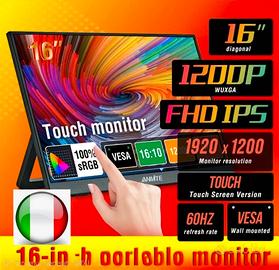 Monitor touch portatile Anmite da 16 pollici, 1200
