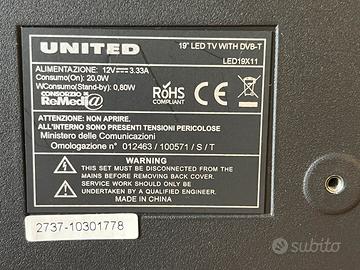 Monitor/TV 19 pollici a Led UNITED. Vendo per inutilizzo. Il monitor e il telecomando sono funzionanati.