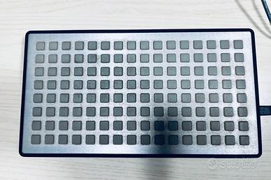 Tasti in silicone su involucro in acciaio, piastra in alluminio con cornice.