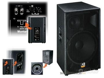 Coppia casse attive Montarbo T15A anno di costruzione 2005, potenza 500w cadauna, woofer da 15" in neodimio, 3 vie, biamplificate con finale in classe AB (350w sul woofer e 150w medio alti), la resa e le condizioni sono ottime, vendo solo perché troppo grosse e pesanti per il tipo di eventi che faccio. Le casse si presentano in ottimo stato, gli altoparlanti sono tutti originali b&c, il woofer in particolare è il 15HPL76 in neodimio, usato anche su altri prodotti montarbo come le W17, anche il finale è lo stesso delle W17, gli amplificatori sono stati revisionati nel 2022 e le casse sono anche state riverniciate da poco con vernice apposta per diffusori (warnex), disponibile per fare tutte le prove che volete presso mio magazzino Prezzo 1000€ la coppia Solo ritiro a mano visto il peso e le dimensioni Sul mio profilo ho molti altri annunci di materiale audio e luci