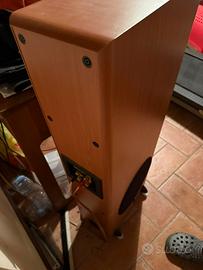 Mordaunt Short MS 908 in ottime condizioni. Solo consegna a mano uscita autostradale di Fidenza (PR) Specifications Frequency Response: 35 Hz – 22 kHz Sensitivity: 90 db for a 1 Watt input Impedance (nominal): 8 Ohms Power Rating: 15W – 150W rms Driver Compliment: 1 – 10″ Long throw woofer 2 – 5.25 ” Aluminum alloy mid / bass 1 – 1″ Aluminum tweeter Crossover: 3-way with first order mid and HF with DVP Connection: Biwire capable, gold plated 5-way binding posts Dimensions: 37.4″ H × 7″ W × 13.7″ D Weight: 41.75 pounds each
