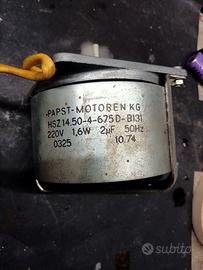 Motore elettrico ad induzione 220V della Papst, nato esclusivamente per il trascinamento di nastro magnetico nei registratori professionali a bobine e nelle unità echo a nastro vintage, molte case lo montavano nelle unità echo a nastro come: SEMPRINI, FBT, LEM, DYNACORD.