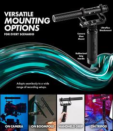 Opzioni di montaggio versatili: l'X1 include un supporto antiurto UltraFlex con un supporto per slitta per fotocamera, un'impugnatura gommata per la registrazione portatile e un treppiede con testa a sfera, garantendo stabilità e adattabilità per qualsiasi scenario di registrazione. Perfetto per adattarsi su bracci e supporti da tavolo.