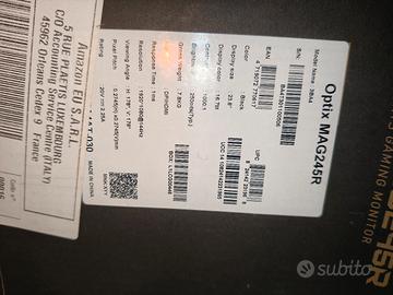 monitor tenuto perfettamente e funzionante al 100% SCHERMO IPS, IMMAGINI SQUISITI, BORDI ULTRASOTTILI – Grazie allo schermo IPS l’ Optix MAG245R assicura un’esperienza visiva impressionante con colori più ricchi. Il suo design frameless vi offre pure un gaming eccezionale con più schermi. DISPLAY FHD da 23.8" - Lo schermo IPS 1920 x 1080 con formato 16:9 e 16,7 mio. di colori (luminosità 250 cd/m2, rapporto di contrasto 1000:1) assicura un gioco eccezionale. Cura degli occi con tecnologie anti-flicker, anti-riflesso e low blue light. 144 HZ REFRESH RATE, 1MS RESPONSE TIME – Il refresh rate (G-SYNC compatibile) assicura il movement tracking precisissimo (giochi fps, simultatori). Con solo 1ms di tempo di risposta avrai un gioco veloce e privo di interferenze come tearing. CONNETTIVITÀ ECCELLENTE - Le opzioni di interfaccia video includono un DisplayPort 1.2a (1920x1080/165Hz) e due porte HDMI 1.4. Le porte aggiuntive includono una porta USB 2.0 Tipo B, 2 porte USB Tipo A e un jack per l'uscita delle cuffie. chiedo 60 euro