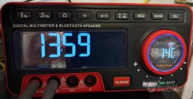 MULTIMETRO DIGITALE DA BANCO AN888S BT - Specifiche tecniche: Display (LCD) 19999 COUNT - Gamma Automatico / Manuale Ccommutabile - Materiale: ABS + TPE - Frequenza di campionamento: 3 volte / sec - Funzionamento manuale / automatico: commutabile, più conveniente - Vero RMS - Conservazione dei dati - Retroilluminazione dello schermo - Batteria scarica - Standby automatico - Test Diodo - Tipo di Batteria al litio 18650 - AUDIO & BLUETHOOTH: Versione BT V5.0 - Distanza di trasmissione =10M - Potenza nominale 2x4W RMS - Gamma di risposta in frequenza 100Hz-18KHz - Distorsione =1% - Rapporto segnale-rumore =76dB - Dimensione articolo: 20 * 10,5 * 13,5 cm - Peso dell'articolo: 907 g - Formato del pacchetto: 22,8 * 15,4 * 15 cm - Peso del pacchetto: 1379 g - Spedizione con corriere espresso, tracciabile a 10€