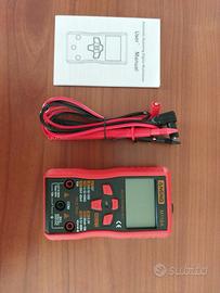 Mini Multimetro Tester digitale M118A a 6000 conteggi. Consente la misura di tensione ac e dc, corrente ac e dc, continuità, resistenza, capacità, prova diodi, NCV (Non Contact Voltage). Integra anche una comoda torcia a led. Nuovo in confezione originale. Quantità disponibile 5.